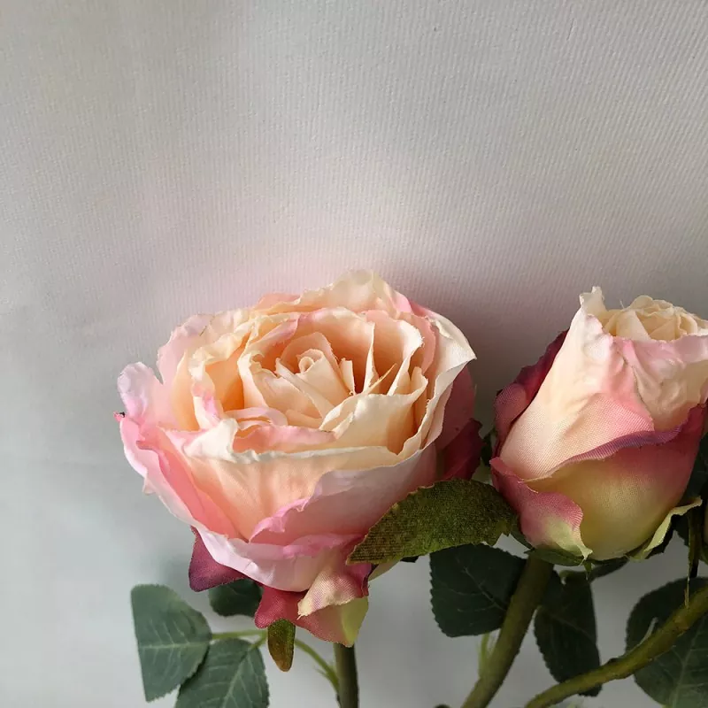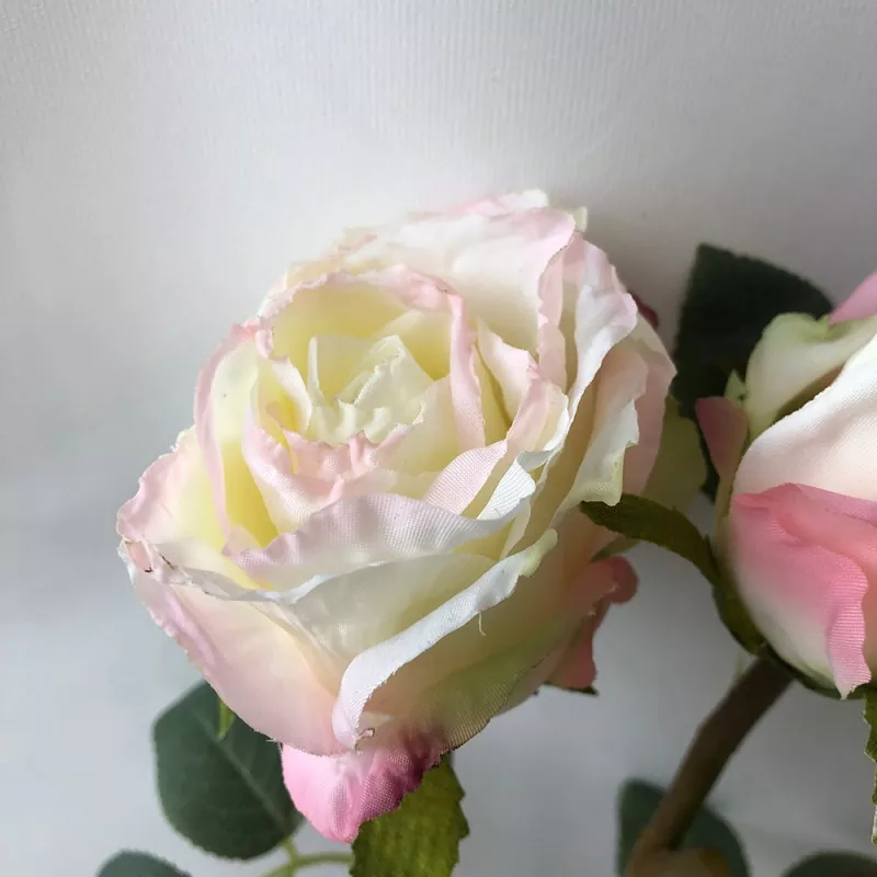1. tre-hoved blomsterdesign: Hver gren af denne kunstige rosespray har tre blomsterhoveder med henholdsvis diametre på henholdsvis 2 cm, 4 cm og 5 cm. Blomsterhovederne er arrangeret naturligt og smukt, velegnet til vaseblomsterarrangement eller DIY -gratis matching.