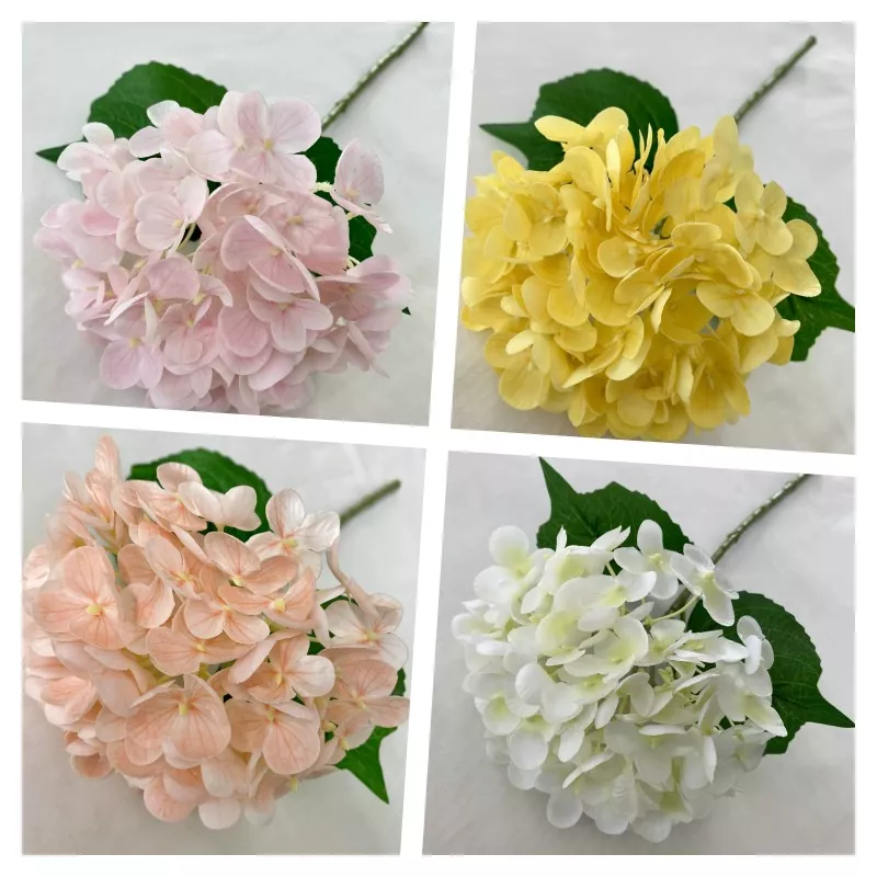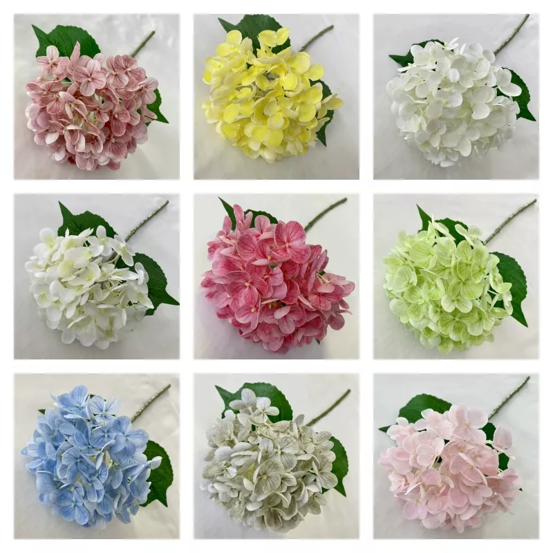 22 farver Denne hydrangea virkelige berøring af kunstige blomster kommer i 22 farver, der dækker de fleste hverdagslige udsmykningsbehov. Ægte touch Dette produkt er lavet af blød gummi med en klar struktur og en blød, behagelig fornemmelse. Højde: 45 cm Denne virkelige berøringskunstige blomst er 45 cm høj og har to grønne blade, hvilket gør den velegnet til vaser, midtstykker og mere. Lav pris Blomsterhovedet er 15 cm i diameter og har 72 kronblade. Prisen er ca. $ 0,80-$ 1,20. Store mængder er tilgængelige. Lav MOQ Dette produkt er en bestseller og er på lager året rundt. Minimumsordren er 1 stykke. Det er simpelthen fantastisk!