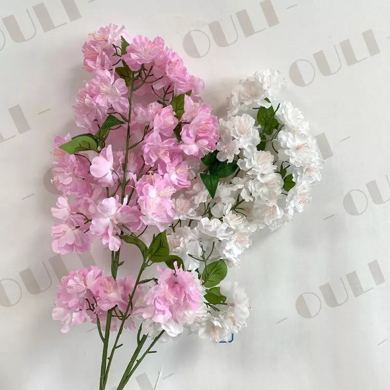 Ouli-hvide kirsebærblomster kunstige blomster er flammehæmmende, hvilket gør dem ideelle til brandbestandige anvendelser.